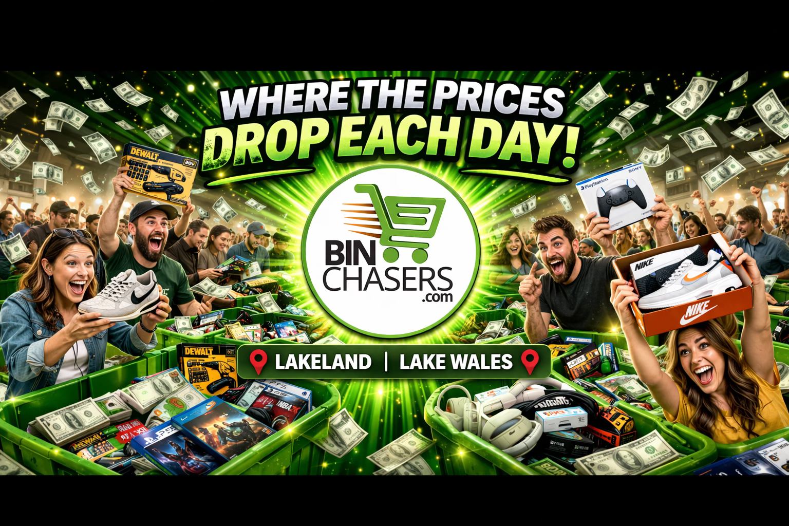 Customers consistently praise Bin Chasers Lakeland for its impressive selection, excellent deals, and friendly staff, with shoppers regularly finding high-value items at significantly discounted prices. Many customers appreciate the store's organization and the helpfulness of employees, and several mention traveling considerable distances specifically to shop there because of the quality experience and bargains available. The main feedback focuses on the outstanding value proposition, with customers highlighting specific deals like $50 items for $1 and substantial Christmas purchases for under $20.
