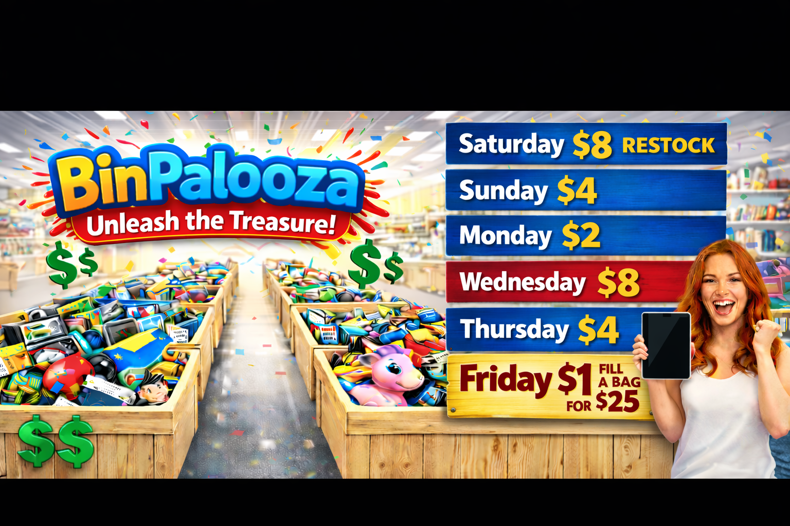 Customers consistently praise BinPalooza for its exceptional deals on brand-name and household items, with shoppers highlighting the treasure-hunt experience of browsing through bins filled with frequently changing inventory. The staff and ownership receive widespread recognition for being friendly, personable, and genuinely helpful, with several customers noting that employees go above and beyond to assist with specific requests. Overall, visitors appreciate the store as a well-organized, budget-friendly shopping destination where the combination of low prices, diverse selection, and positive customer service creates an enjoyable experience that encourages repeat visits.