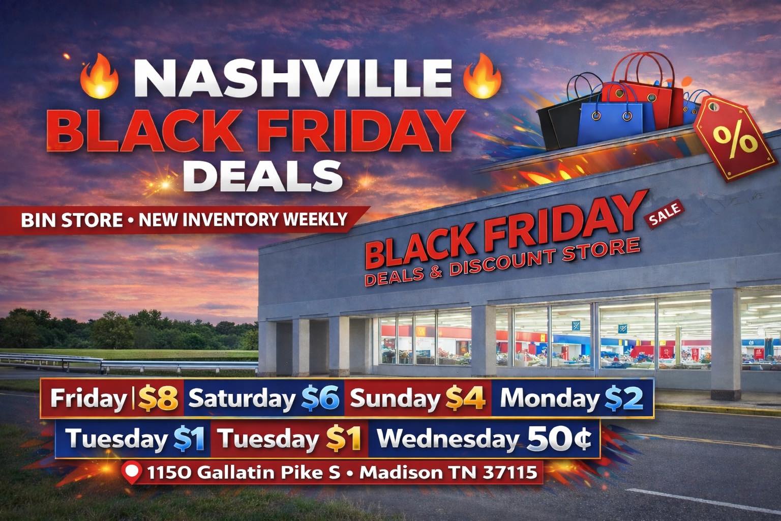 Black Friday Deals Nashville offers Amazon returns and liquidation items at heavily discounted prices that vary by day, with Friday at $8, Saturday at $6, and Sunday at $4, creating a "treasure hunt" shopping experience that many customers find exciting and rewarding. Most reviewers praise the variety of merchandise—including clothes, electronics, home goods, and name-brand items—and recommend arriving early or on specific promotional days for the best selection. However, experiences are mixed: while some shoppers love the fun and deals, others criticize certain practices like separating premium items for higher prices, requiring staff to open boxes before purchase, and the aggressive reseller crowds that can detract from the shopping atmosphere.